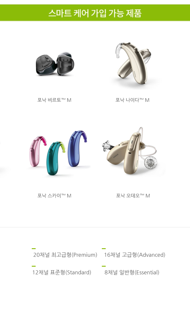 포낙 스마트 케어 가입 대상 : 포낙보청기에서 규정하고 있는 보청기 시리즈 제품에 대해서 보장이 가능합니다.